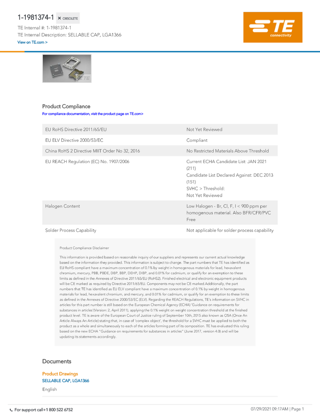 TE Connectivity 1-1981374-1 TE AMP LGA Land Grid Array Sockets, 1 szt.