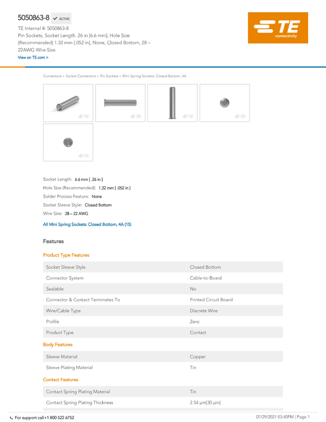 TE Connectivity 50863-4 TE AMP Mini-Spring Sockets, 1 szt.