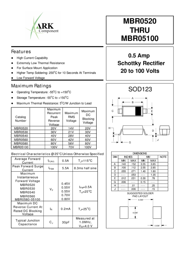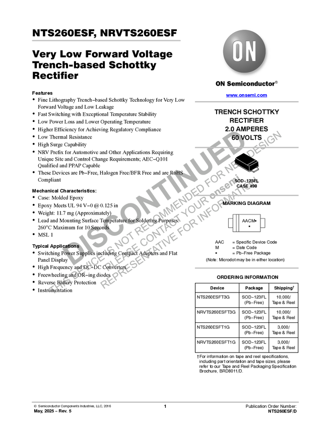 Trench Schottky Rectifier, Very Low Leakage 2A, 60V in SOD123 package