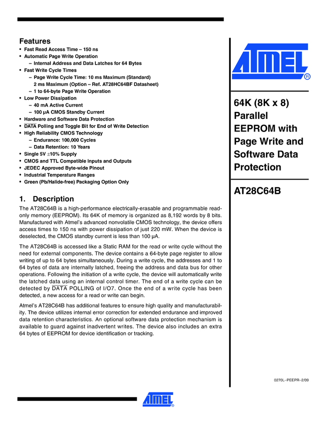 Parallel EEPROM 64K (8K x 8) with Page Write and Software Data Protection