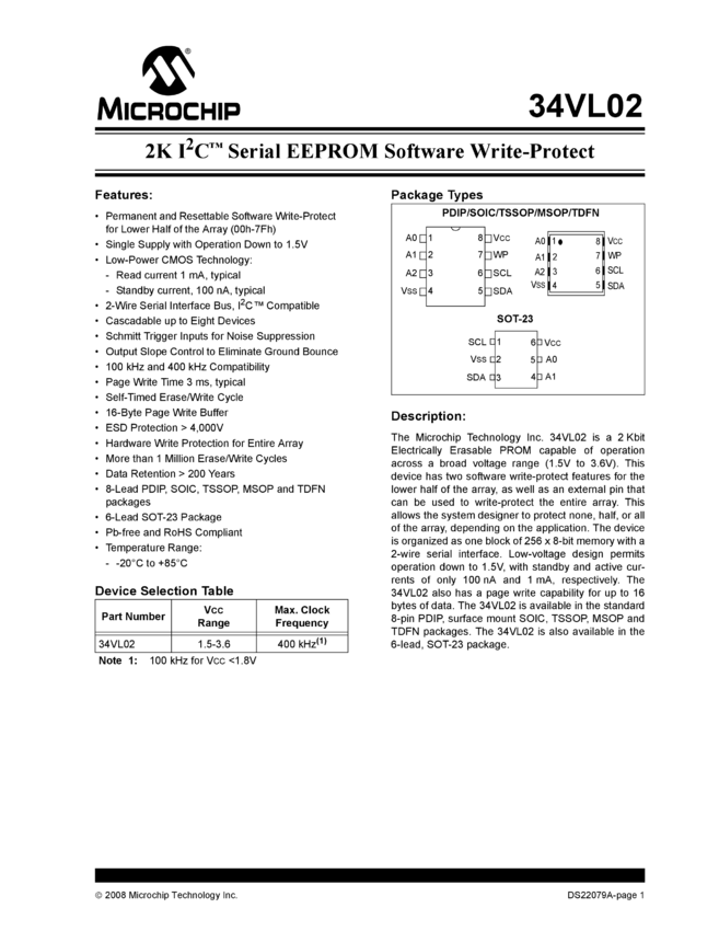 34VL02 2K I2C Serial EEPROM Software Write-Protect Data Sheet (03/14/2008)