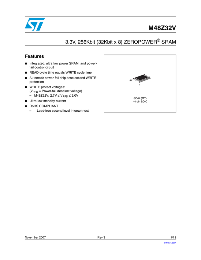Zeropower RAM 3,3V; 32kx8 35ns 0-70 st SOH44