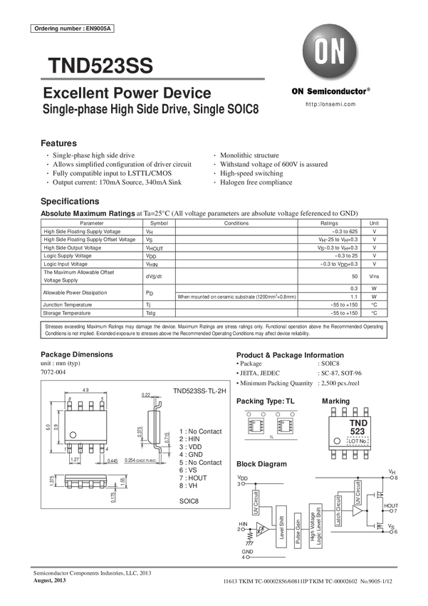 Excellent Power Device, Single-phase High Side Drive, Single SOIC8