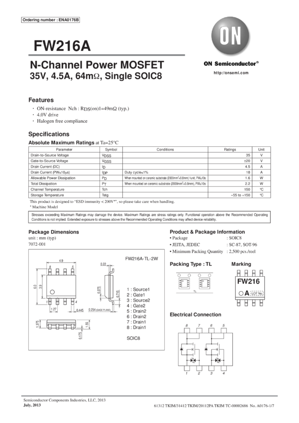 Power MOSFET 35V 4.5A 64 mOhm Single N-Channel SOIC8