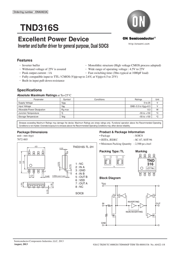 Excellent Power Device, Dual buffer driver for general purpose, Dual SOIC8