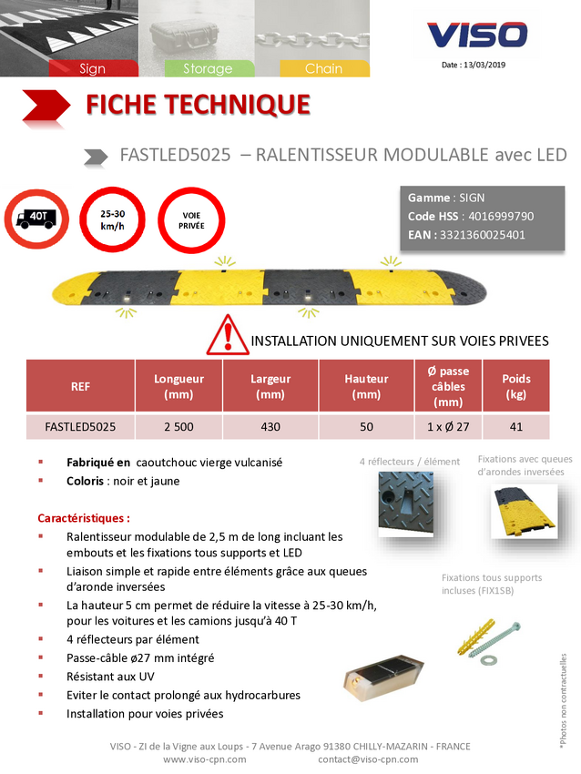 Retarder z solarną diodą LED+ VISO FASTLED5025 Wulkanizowana kauczuk świeży (D x S x W) 2500 x 430 x 50 mm