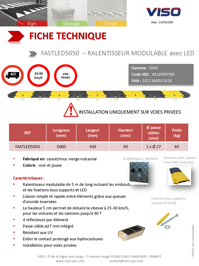 Retarder z solarną diodą LED+ VISO FASTLED7050 Wulkanizowana kauczuk świeży (D x S x W) 5000 x 430 x 70 mm