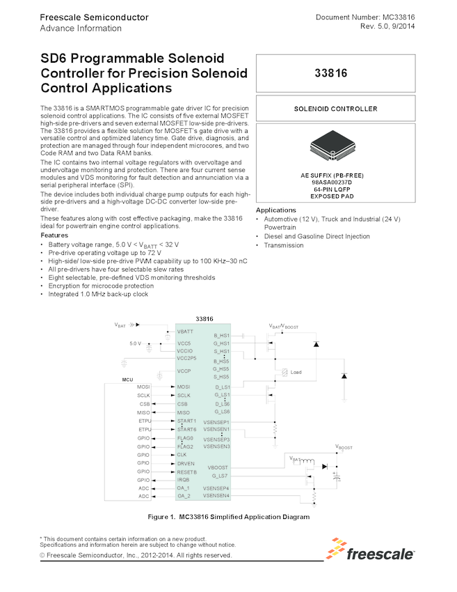 MC33816: SD6 Programmable Gate Driver for Solenoid Control