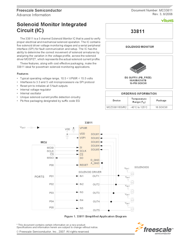 MC33811: Solenoid Monitor Integrated Circuit