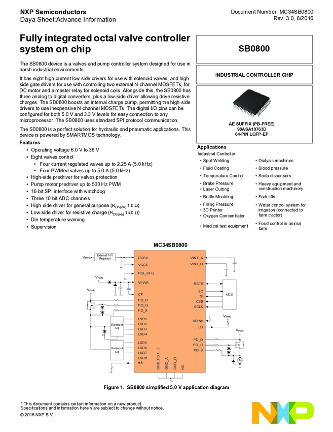 MC33816, SD6 Programmable Solenoid Controller for Precision Solenoid Control Applications