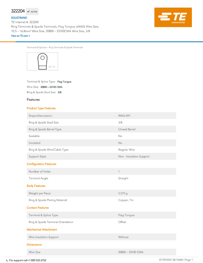 SOLISTRAND Terminals & Splices TE Connectivity 322204 TE AMP SOLISTRAND Terminals & Splices, 1 szt.