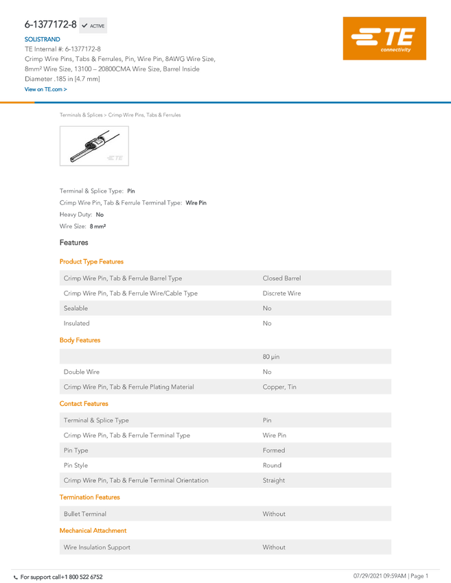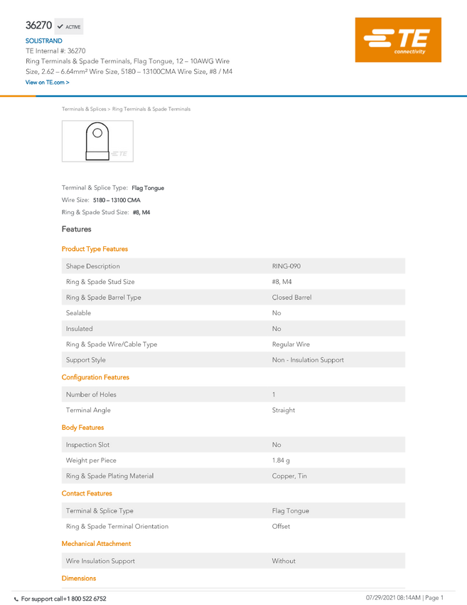 TE Connectivity 1-36270-1 TE AMP SOLISTRAND Terminals & Splices, 1 szt.