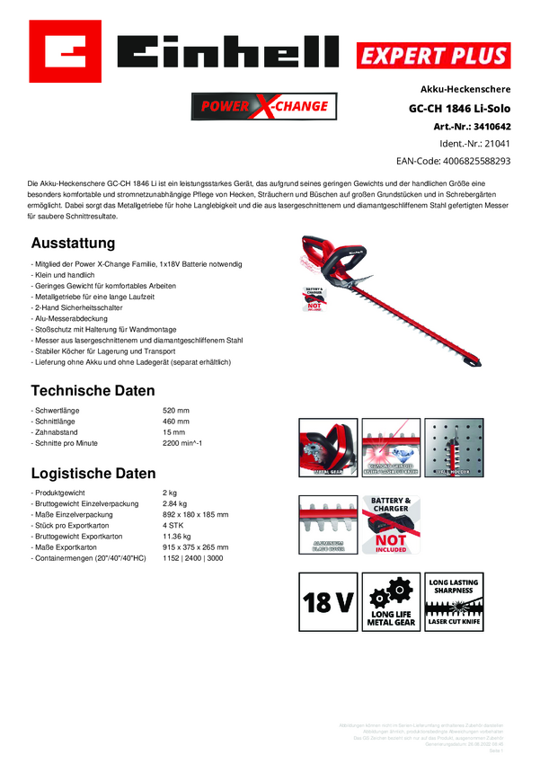 Einhell GC-CH 1846 Li-Solo akumulatorowy Nożyce do żywopłotu bez akumulatora Li-Ion 460 mm