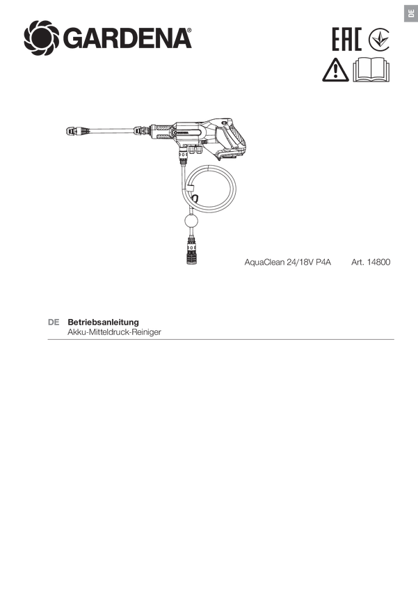 GARDENA AquaClean 24/18V solo Myjka ciśnieniowa 24 bar