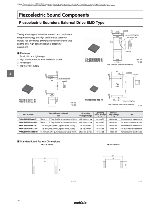Audio Indicator Sounder Piezo 1.5Vo-p Solder Pad Surface Mount