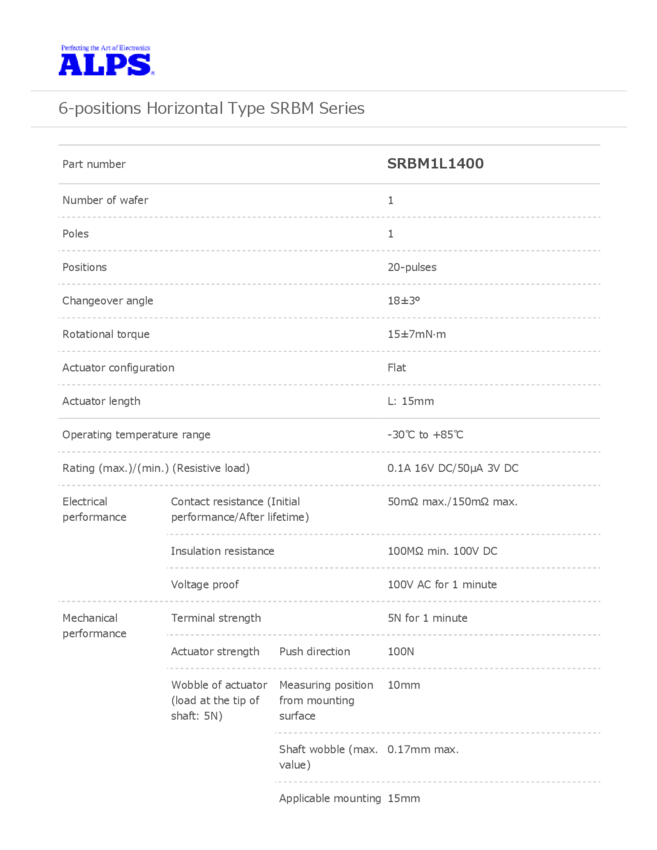 Switch Rotary SP20T 20 18-Tooth Serration Shaft PC Pins 0.1A 16VDC