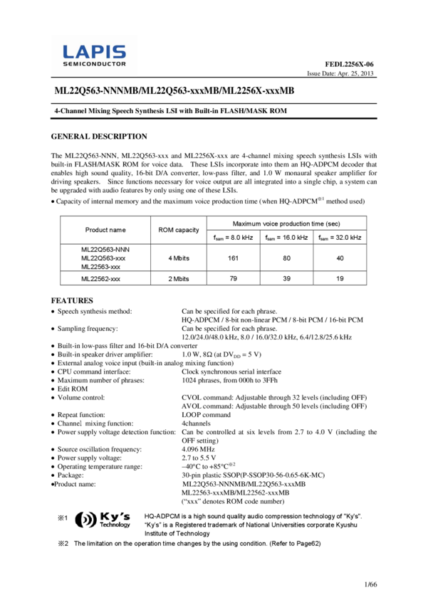 Speech Synthesis LSI 4-CH Mixing Oki ADPCM Algorithm-Based 80-Pin TQFP