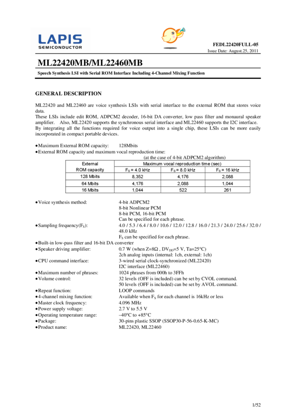 Speech Synthesis LSI with Serial ROM Interface 30-Pin SSOP