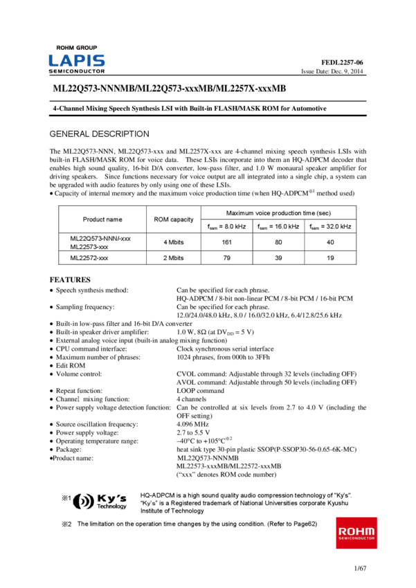 Speech Synthesis LSI 4-CH Mixing Built-In Flash/Mask ROM 30-Pin SSOP