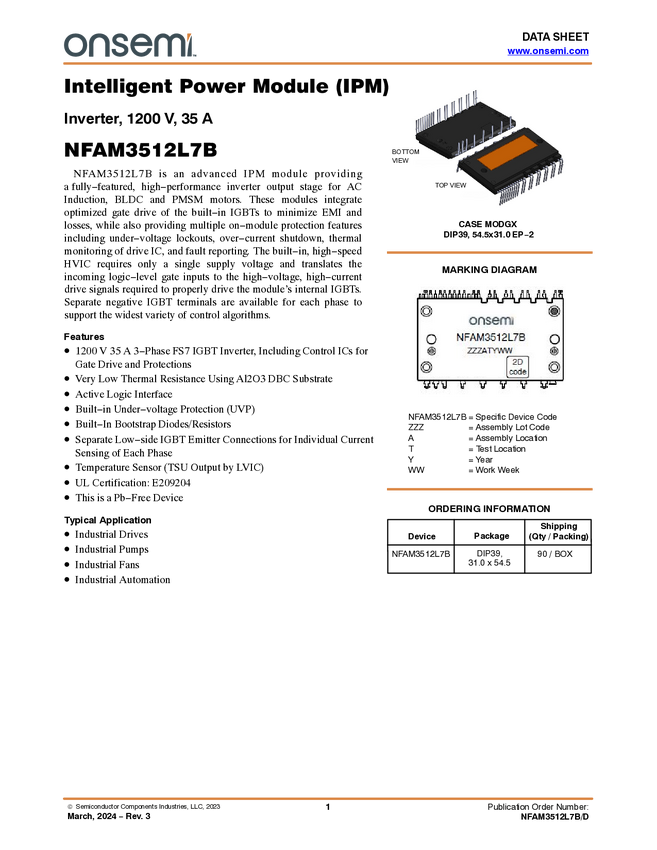 Intelligent Power Module, SPM31, 1200V, 35A