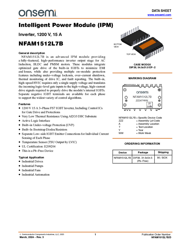 Intelligent Power Module, SPM31, 1200V, 15A
