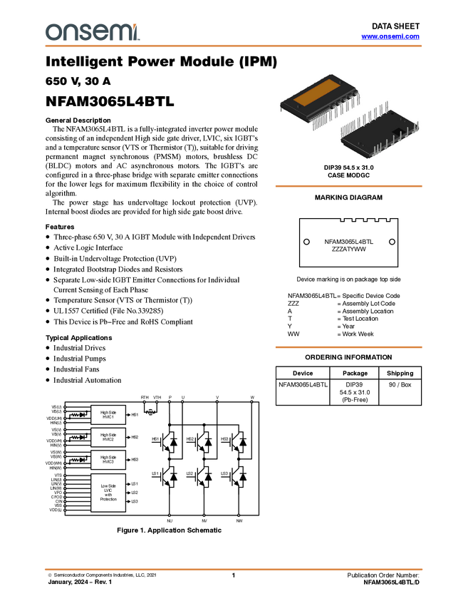 Intelligent Power Module, SPM31, 650 V, 30A (Low speed version)