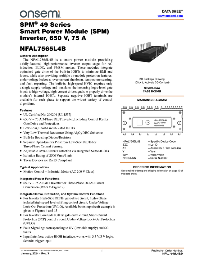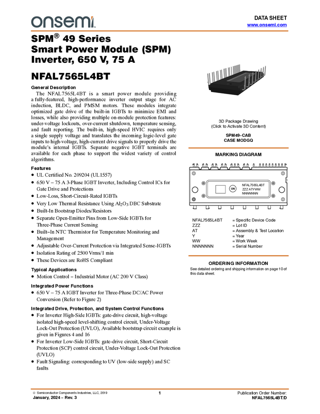 Intelligent Power Module, SPM49, 650 V, 75A