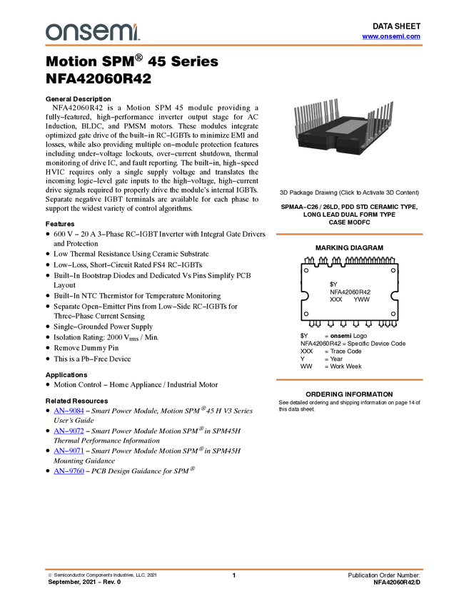 Intelligent Power Module(IPM), SPM45, 600V, 20A