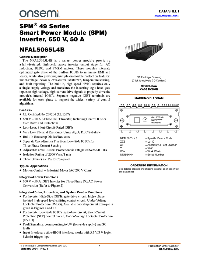 Intelligent Power Module, SPM49, 650 V, 50A