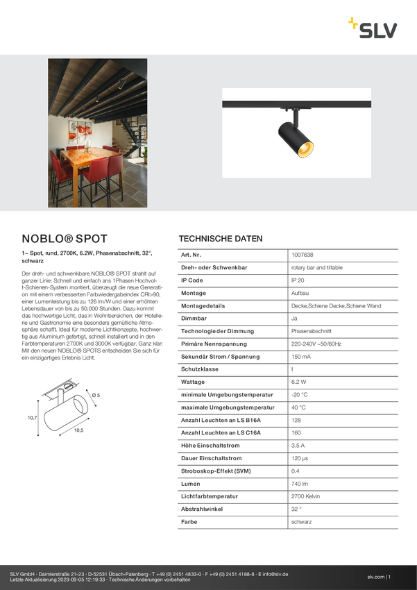 Reflektor szynowy LED SLV NOBLO SPOT 6.2 W LED 740 lm czarny