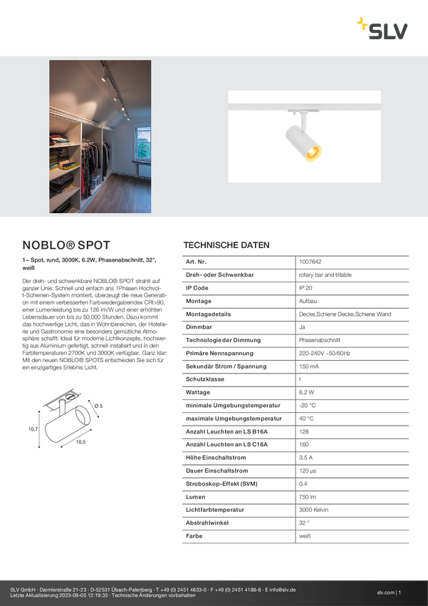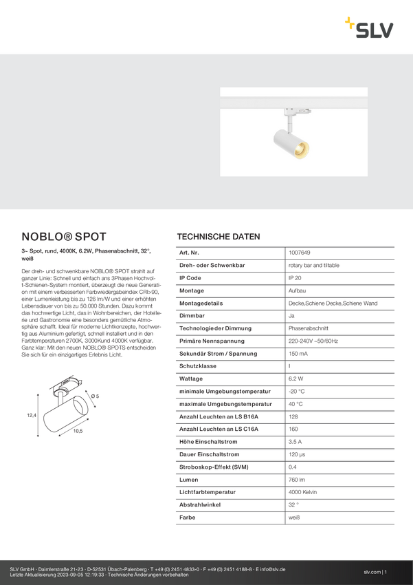 Reflektor szynowy LED SLV Noblo Spot 1007642 1-fazowy 6.2 W LED 750 lm biały