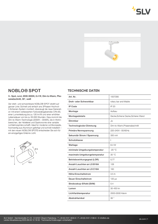 Reflektor szynowy LED SLV NOBLO SPOT 8.4 W LED 450 lm biały