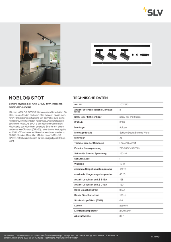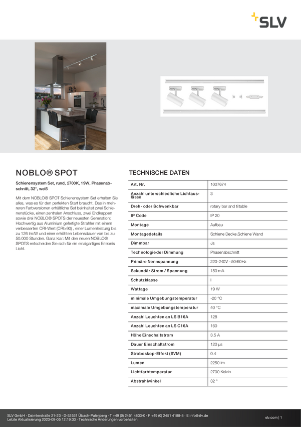 Reflektor szynowy LED SLV Noblo Spot 1007674 1-fazowy 19 W LED 750 lm biały