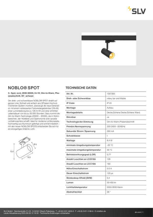 Reflektor szynowy LED SLV NOBLO SPOT 8.4 W LED 450 lm czarny