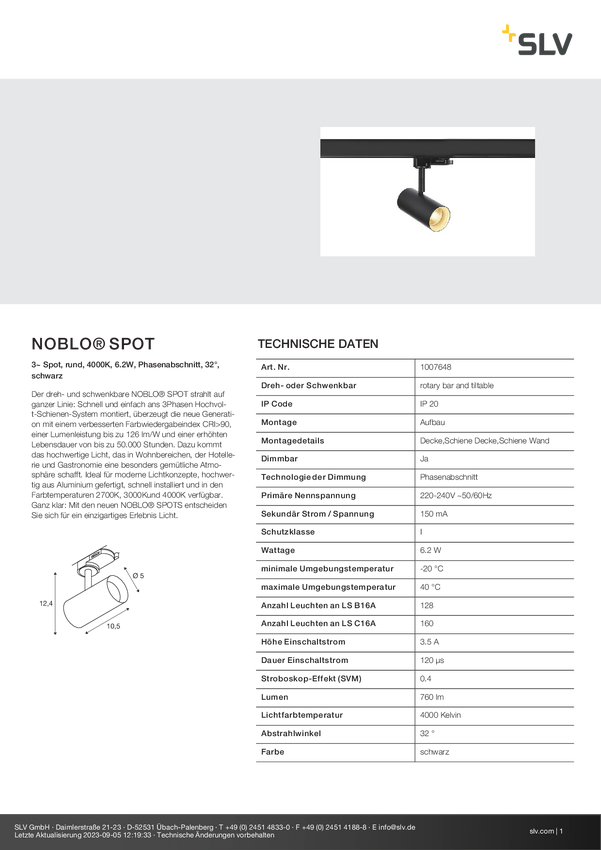 Reflektor szynowy LED SLV Noblo Spot 1007673 1-fazowy 19 W LED 750 lm czarny