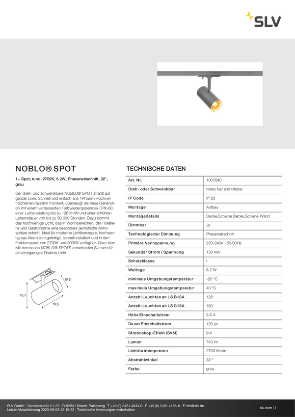 Reflektor szynowy LED SLV Noblo Spot 1007640 1-fazowy 6.2 W LED 740 lm szary