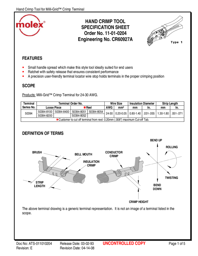 Terminal Drag Spring for 11-40-2192 T Style Terminator Tool