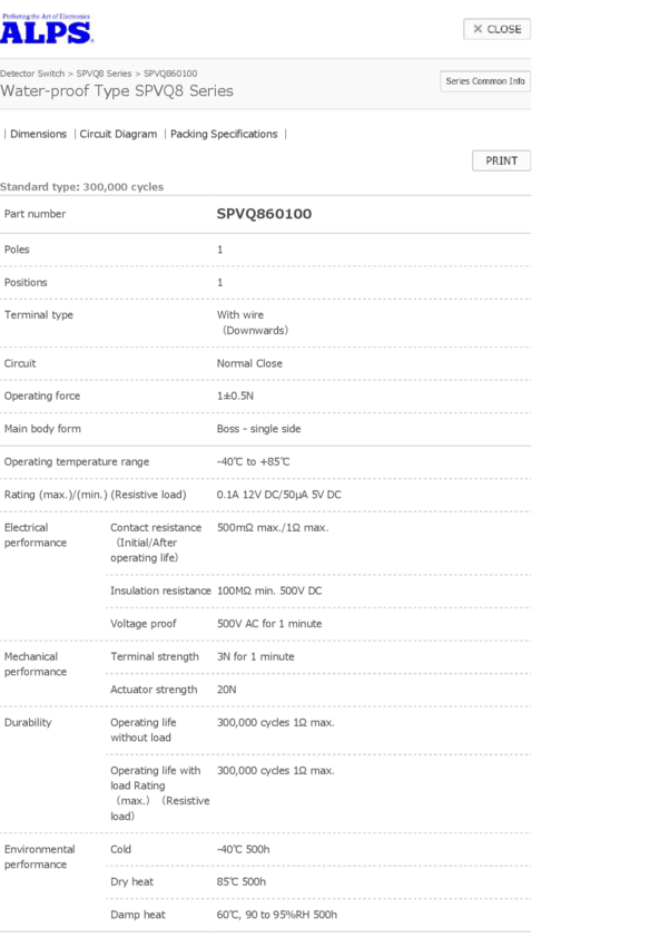 Electromechanical Switch Detect Switch SPDT 0.1A
