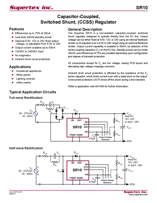 SR10 Datasheet - Capacitor-Coupled, Switched Shunt, (CCSS) Regulator (06/27/2014)