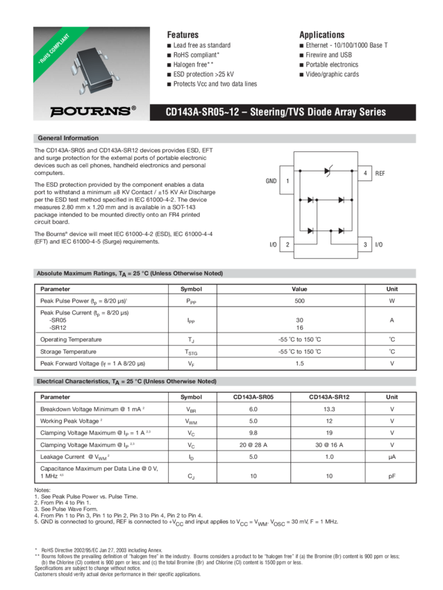 ESD Suppressor Diode Arrays ±15KV 4-Pin(3+Tab) SOT-143