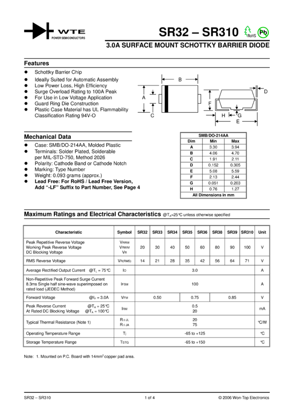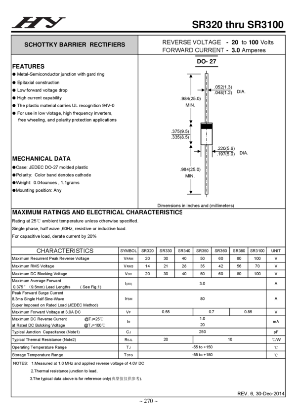 Dioda Schottky, 3A, 60V, DO201AD, ozn. producenta SR360