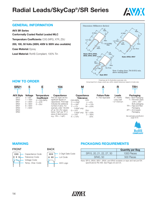 Cap Ceramic 39pF 200V C0G 2% Radial 2.54mm 125°C T/R