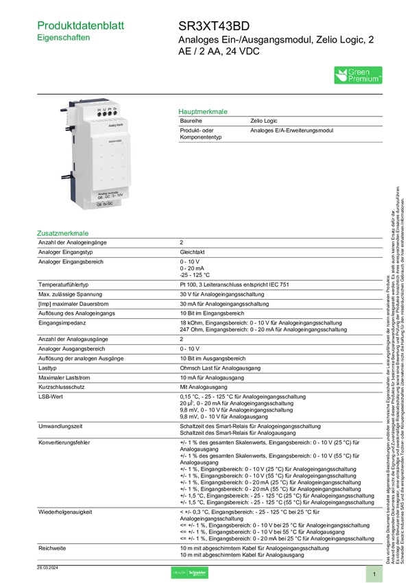 Moduł rozszerzeń PLC Schneider Electric SR3XT43BD SR3XT43BD