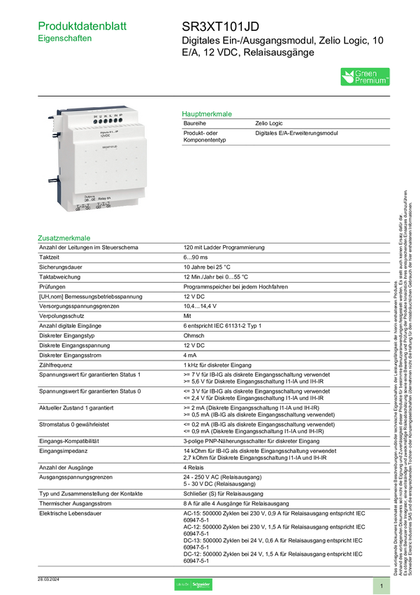 Moduł rozszerzeń PLC Schneider Electric SR3XT101BD