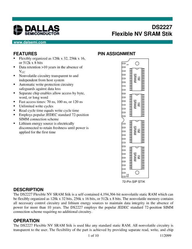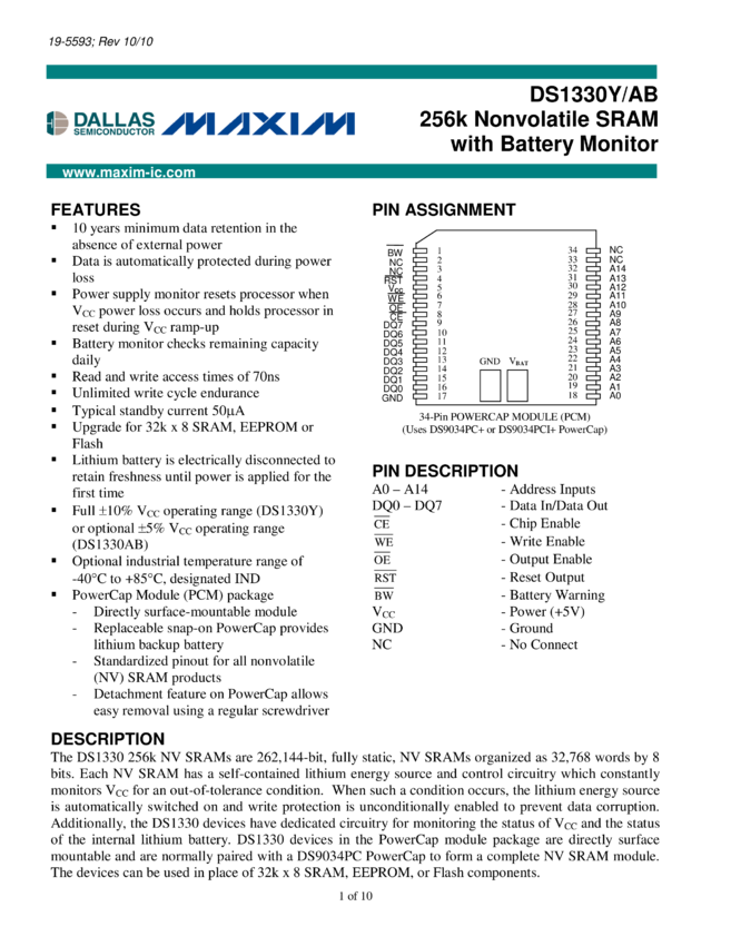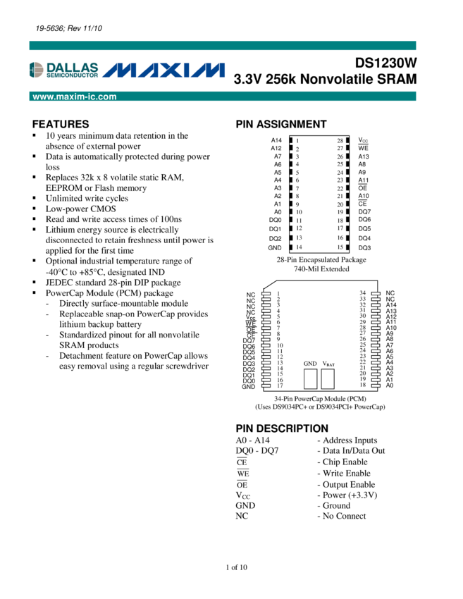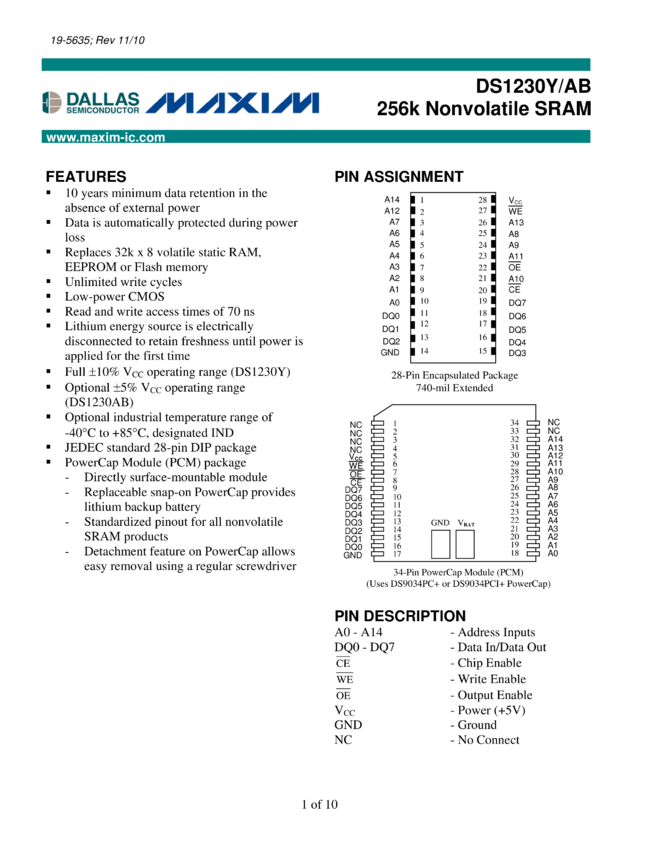 DS1230AB, DS1230Y 256k Nonvolatile SRAM
