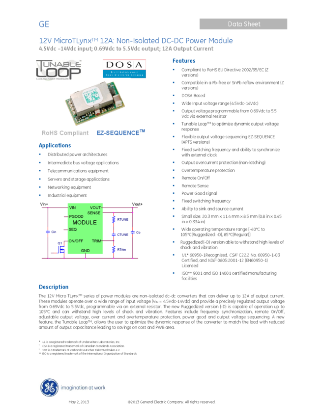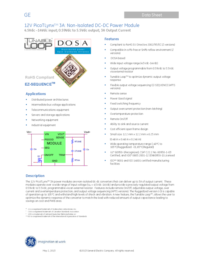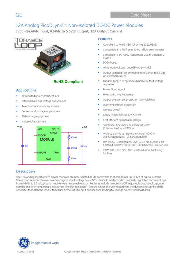 Module DC-DC 1-OUT 0.6V to 5.5V 12A 17-Pin SMT T/R