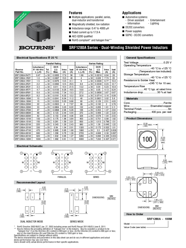 Ind Power Shielded Wirewound 82uH/328uH 20% 100KHz Ferrite 2.05A/1.03A T/R