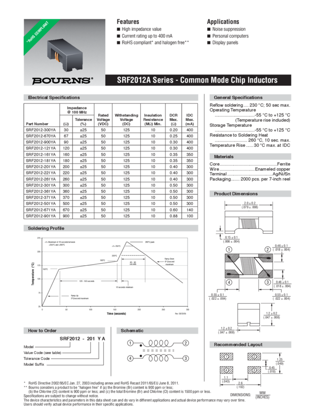 Ind Common Mode Chip Wirewound 120 Ohm 25% 100MHz Ferrite 400mA 0805 T/R