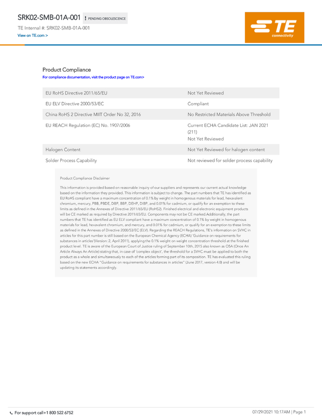 TE Connectivity SRK02-SMB-01A-001 TE ICT SRK Connector, 1 szt.