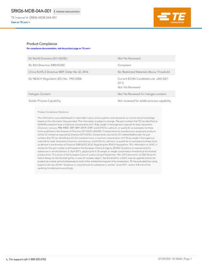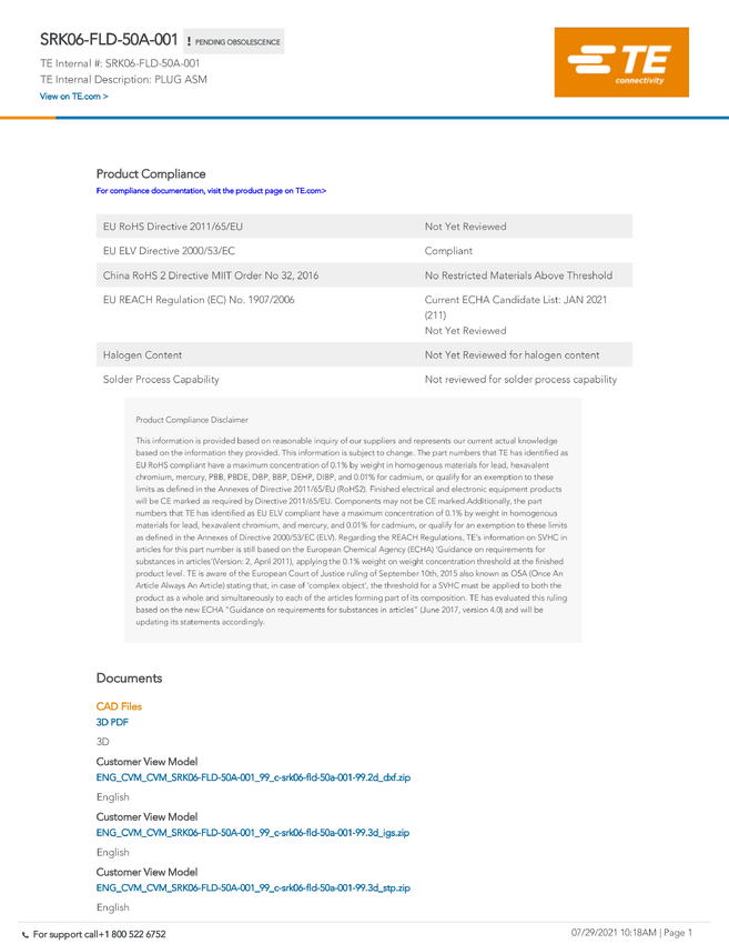 TE Connectivity SRK06-FLD-50A-001 TE ICT SRK Connector, 1 szt.